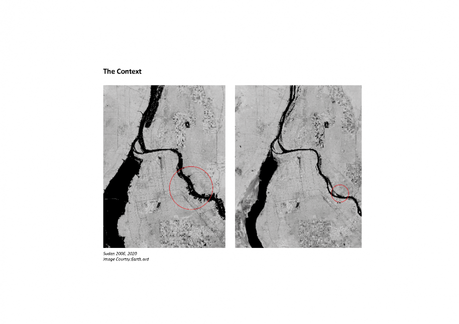 The main objective of this project is to perceive the Nile and its ecosystem as an opportunity to optimise the land it surrounds, creating productive grounds for social, and environmental formations. This can be achieved through the ever-changing systems of water management and exploiting the potentials of flooding. One of the challenging issues of this design thesis is the riparian landscape. The project sets off from a regional scale of floods management and focuses on the case of Wadrawah in the riparian territories of the Blue Nile, which is currently threatened by seasonal flooding, and development pressure due to industrialisation. Several projects failed to address the environmental issues of the village due to the seasonal flooding and foremost, the movement of its residents to the capital for better opportunities according to workers’ demand. Since the Souq is the heart of the village; economically, socially, and culturally, it has actually suffered from destructing floods for the past decades and is threatened as the case of the whole village to full submersion in the near future.