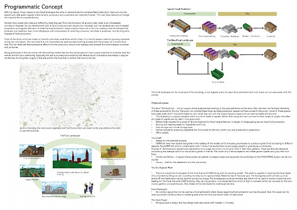 I am Thilini Wijesekera and I recently completed my final year in MArch Architecture. The vision of my project is to create a sustainable connection between local food production and the city. This vision will be achieved through upgrading the Coventry Market to provide a dedicated space to maximise, predominately the local farm-based food supply to the fullest potential in combination with providing tailored access to the local community in this dedicated space. The project aims to