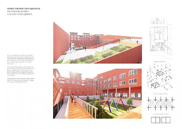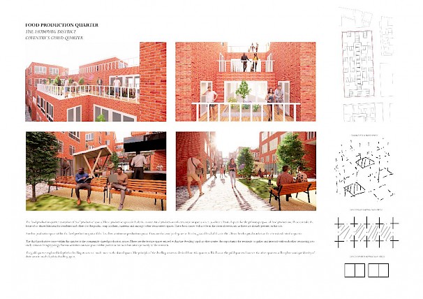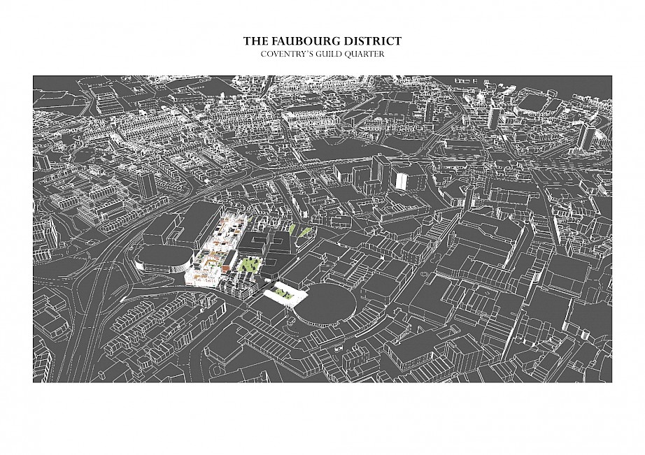 This design thesis is about promoting identity, connection and belonging in Coventry city centre through the creation of a socially condensed guild quarter that is supported and stimulated by various fields of production alongside living within the urban context.