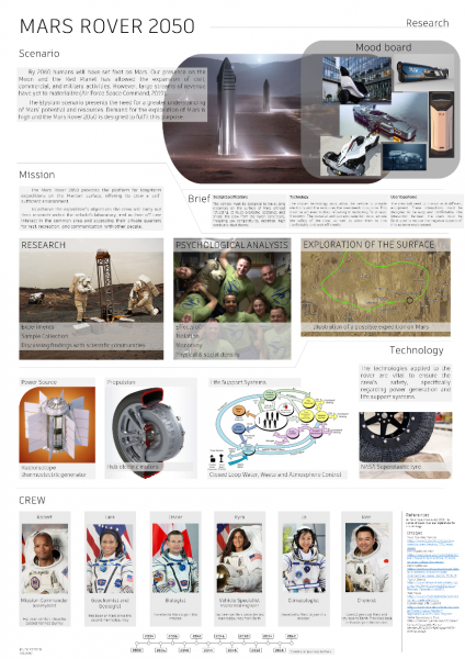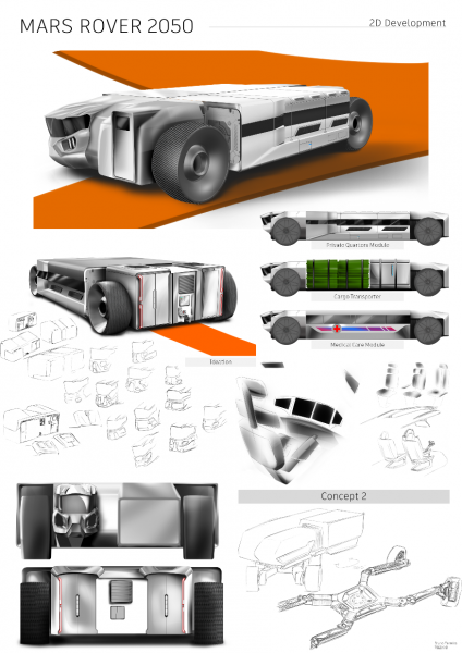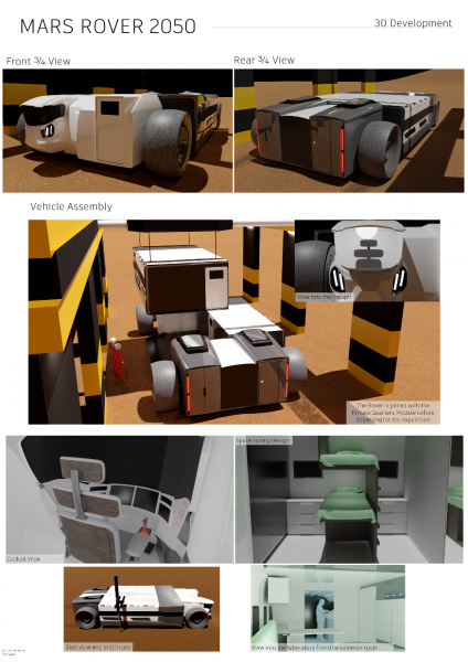 For my Final Major Project, I decided to envision a concept for the exploration of Mars in the future. The Mars Rover 2050 is a vehicle which takes a team of scientists out to uncover the secrets of the Red Planet, allowing the occupants to live, work, and interact within its interior.