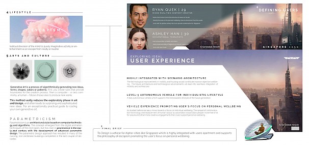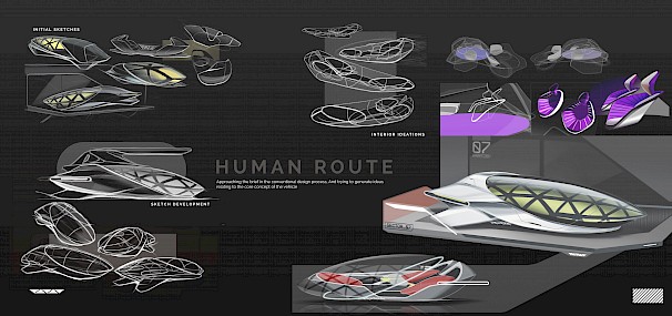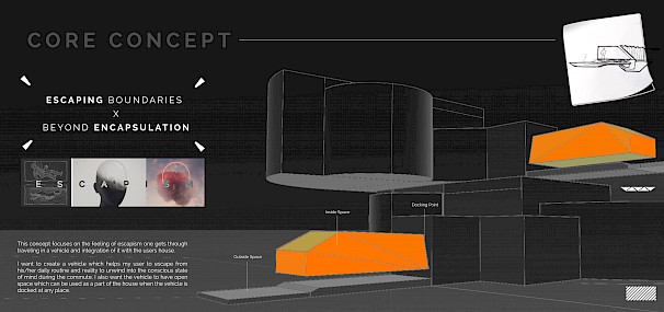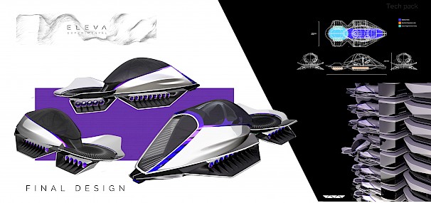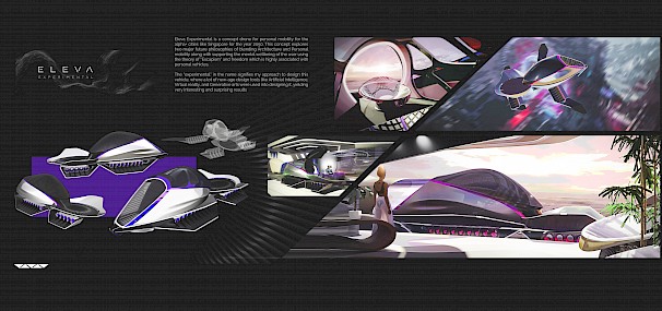 I have always been fascinated with the eternal human desire for movement and exploration. Which led to my passion for vehicles from my earliest days of life. And I consider myself very fortunate to pursue a career field in Automotive and Transport design. I strive for new and diverse challenges as I believe that that new challenge leads to new experiences, which ultimately lead to new learnings, making me grow as a designer and a person every day. For my Master's Final Major Project, My main research topic was how the advancements in technologies like Artificial intelligence and Virtual reality are changing the creative process and the way we design our vehicles. Eleva Experimental is a concept drone for personal mobility for the alpha+ cities like Singapore for the year 2050. This concept explores two major future philosophies of blending Architecture and Personal mobility along with supporting the mental wellbeing of the user using the theory of “Escapism” and freedom which is highly associated with personal vehicles. The “experimental” in the name signifies my approach to design this vehicle, where a lot of new-age design tools like Artificial Intelligence, Virtual reality, and Generative arts were used for designing it.