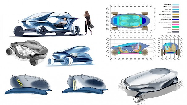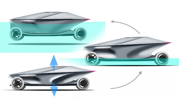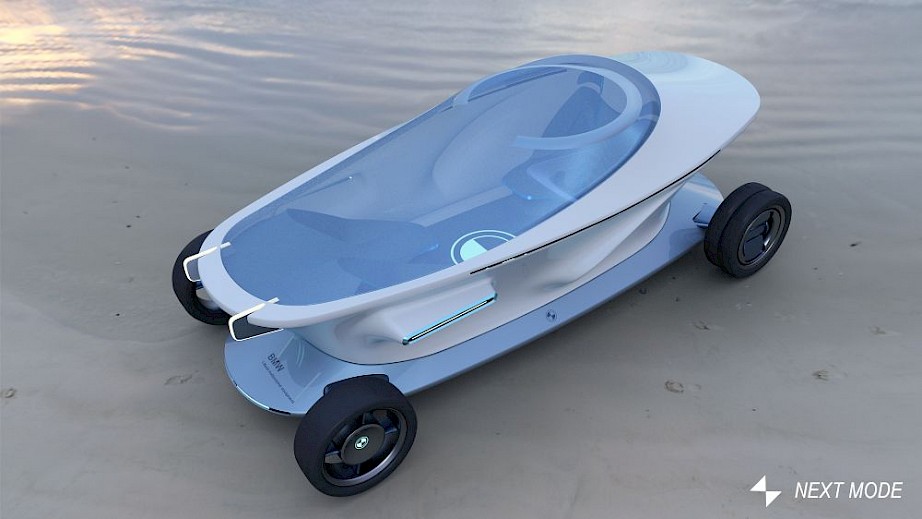 My name is Yuteng Ma from Automotive & Transport Design. Before Automotive design, I was ever graduated with an Industrial design specialty. This is the final major project as my MA project at Coventry University. The concept is one hypothesis for future BMW. The name of the concept and brand is ‘NEXT MODE’ which can be regarded as a sub-brand of future BMW. The project aims to design an amphibious multi-purpose vehicle for future 2050 cities where climate change brings a lot of intense fall weather. The city will be in a transition between flood and sunny days. The blocks are going to switch over between dry streets and watercourses frequently during the year.