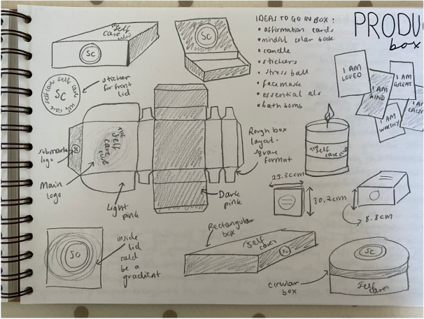 During COVID-19, the wellbeing of Gen-Z females has declined rapidly, reporting lowest levels of mental wellbeing. Cobert noticed this as a design problem for her project and aimed to provide solutions to help promote wellbeing. From this problem, the target audience was formed: teenage girls aged 15-19 living in the UK. Cobert’s branded outcomes were made to be supportive, friendly, and empowering, with wellbeing at the forefront of each.