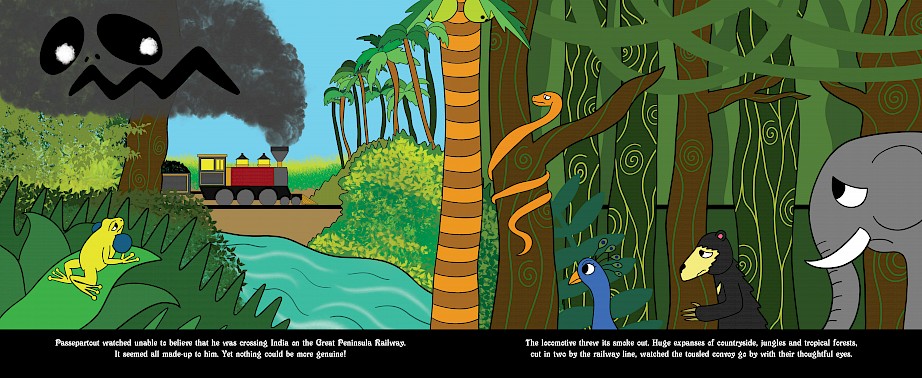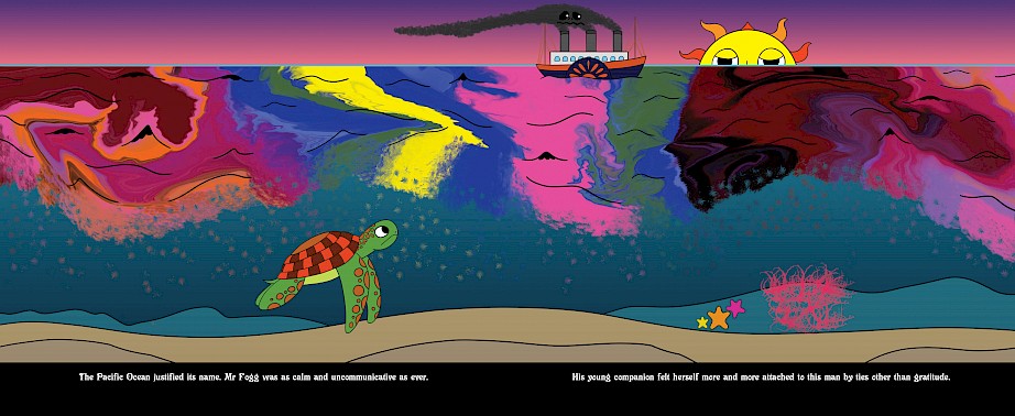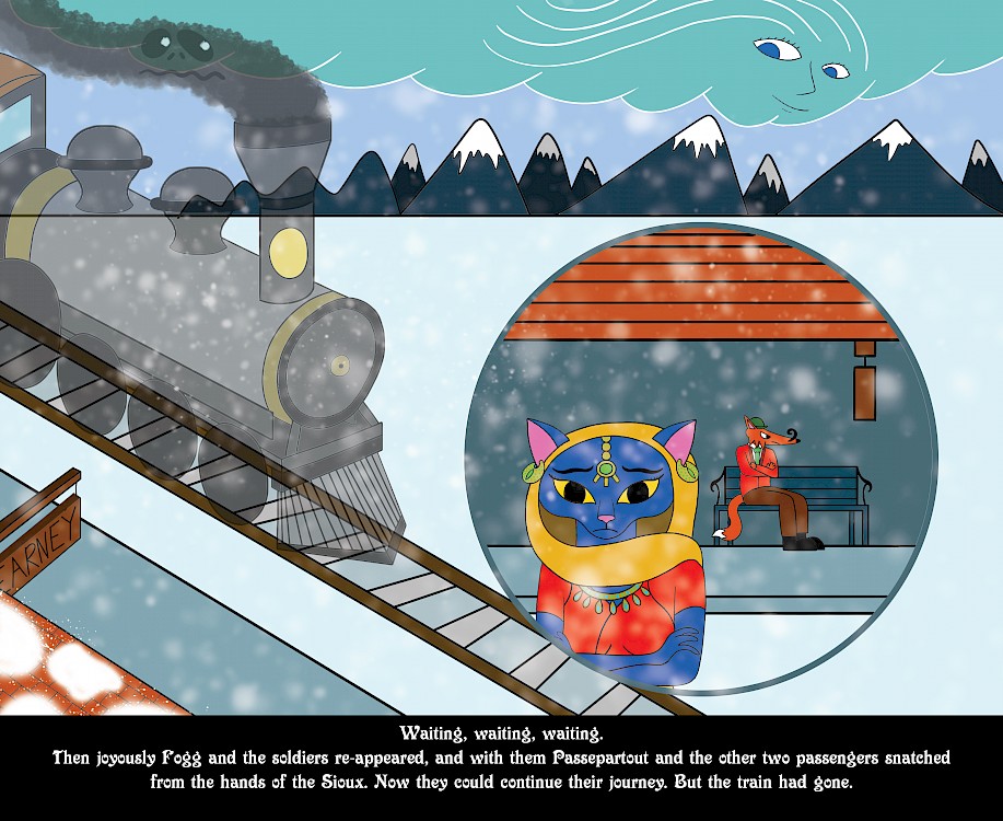 The Covid-19 lockdown and its impact on travel drew Balázs to the classic Jules Verne adventure story, ‘Around the World in 80 Days’. So, for his final major project, he has created an illustrated anthropomorphic version, and not just with animals. This was illustrated in a style of a children’s book, but not really a young children’s book.
