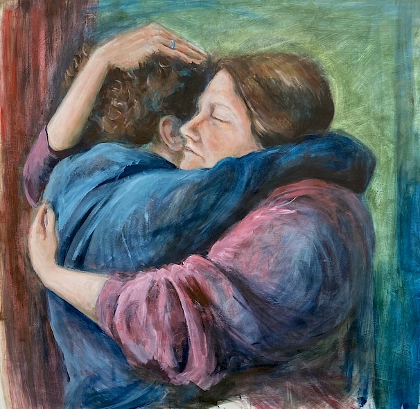The ‘Hug’ series depicts the physical contact between Mother and older child. Hugs become less frequent as the child grows to independence and adulthood. This theme has been made more poignant and more resonant recently with the COVID19 pandemic and social distancing, where people have been denied the physical act of a hug.