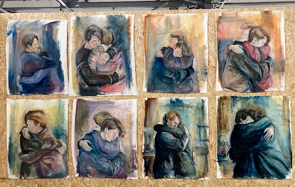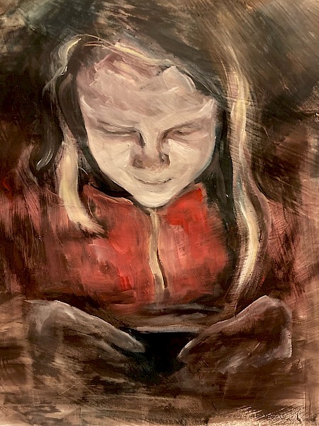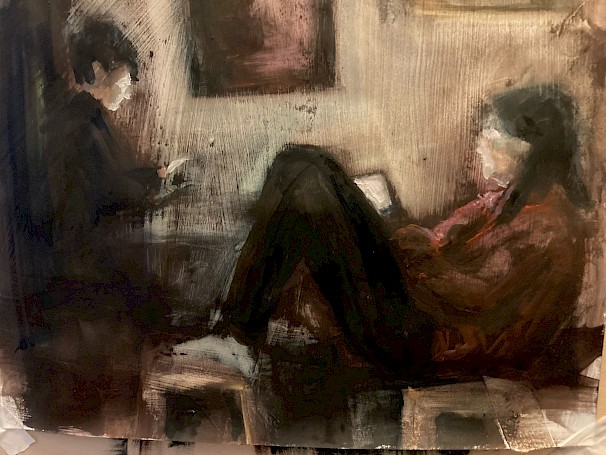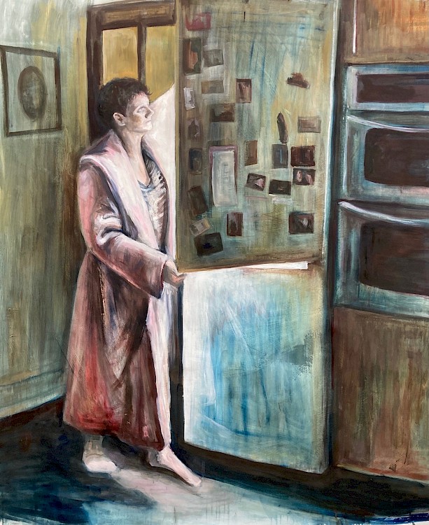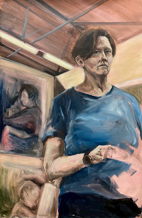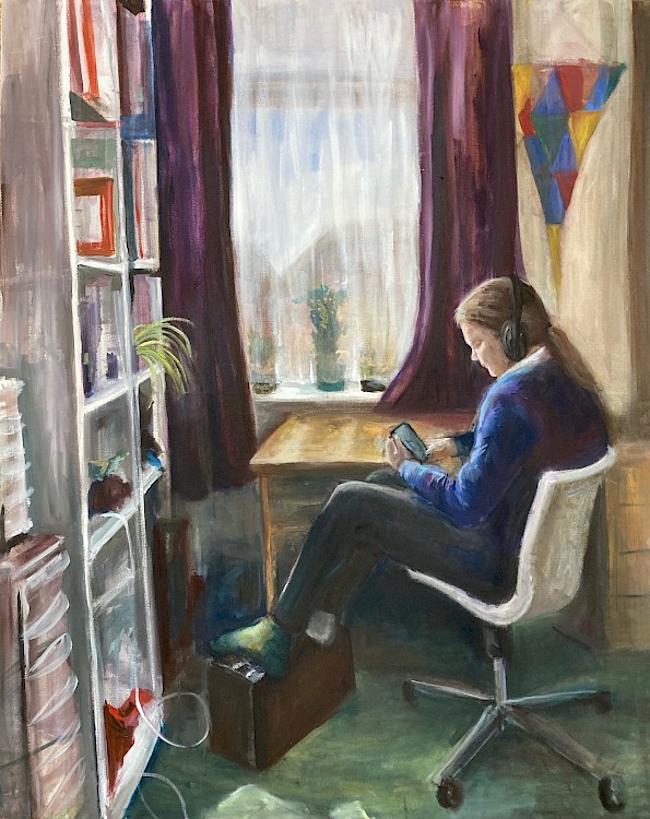 Jenny Suffield is a part time student, half way through the MA Painting course and will be graduating in 2022. Her work is about her domestic life and surroundings. She uses her family as models, exploring their development and interactions. The present is significant in the work, with each piece a snapshot used to reflect the changes that occur in the domestic environment.