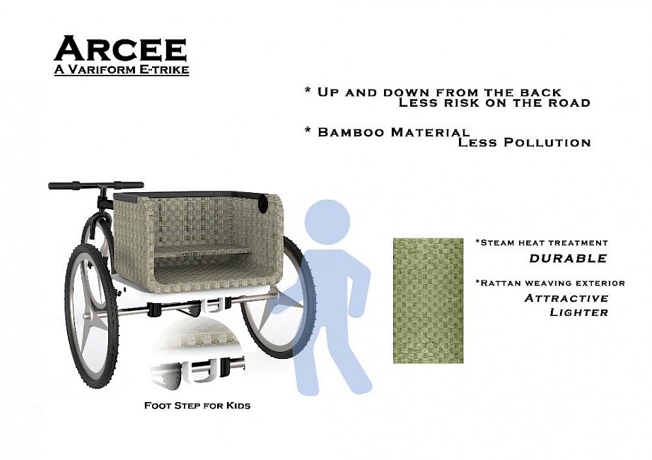 This project aims to alleviate the increasingly congested road traffic in the UK, due to the increasing number of cars by designing a multi-purpose and highly adaptable electric tricycle for British families that can be ridden by one adult and can carry two children. The safety of this bicycle is the primary consideration, and the design direction of the bicycle is multi-purpose and prolonging its service life. The rear seat is a modular design that can be replaced, allowing the bicycle to be freely switched