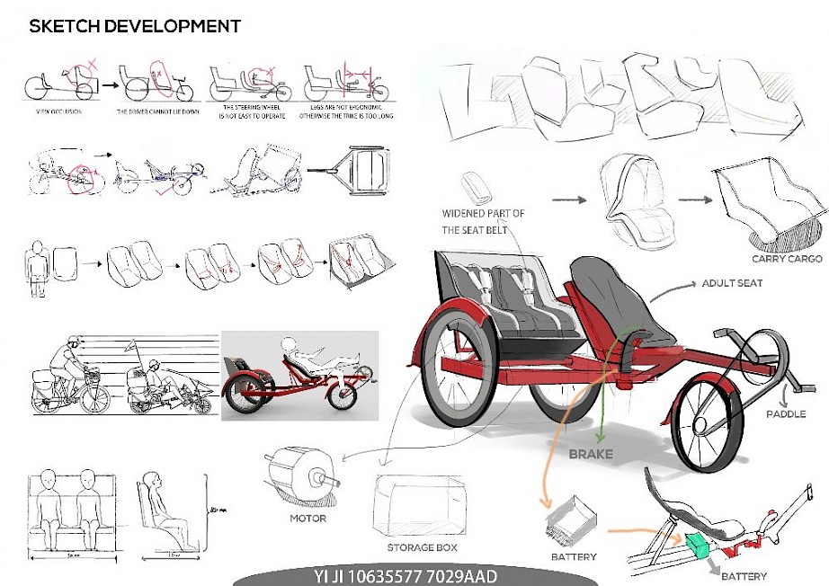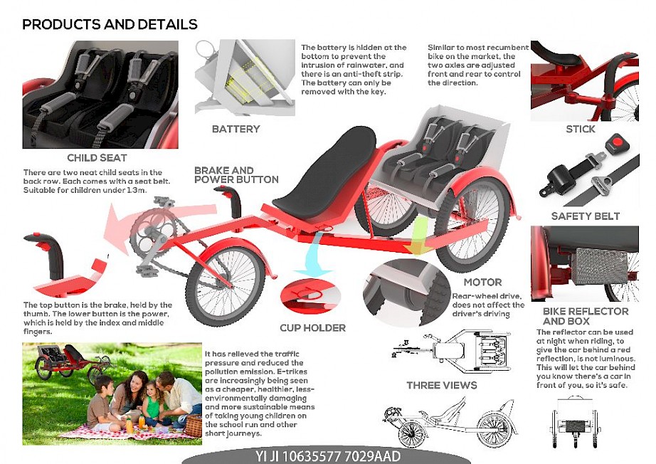 Instead of sitting perched on a regular bicycle seat the rider reclines in a seat with their legs extended forward.