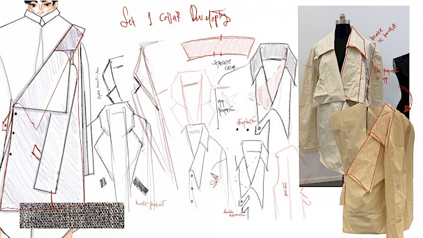 My last project solipsis-Me, is the collection where from it I am knowing myself. The tailoring, the cut, the color and the silhouette describe the way I see my style. Beside creating garments, I also challenge myself to design and create bag collections. I did the collaboration with a bag factory and I also made the bag by myself. Through this project I’d like to create a connection between the clothes to every viewer through emotions and memories, whereby they understand this collection from the experience of their dream.