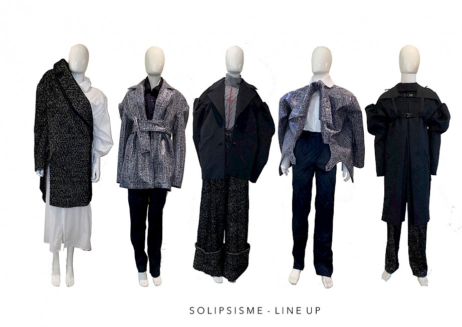 Solipsis-Me came from The word Solipsism, which means the view or theory that the self is all that can be known to exist (Oxford Language, n.d), is the summary of this collection. The feeling of uncertainty of what we saw in the dream left us puzzled when we woke up from the dream.. Dream-life is a gift created just to ourselves where rules of reality do not apply. This collection is a visual interpretation of my dreams through fashion with augmented oversized silhouettes, and it is reversible and transformable to depict the vividness and vagueness of my dreams.