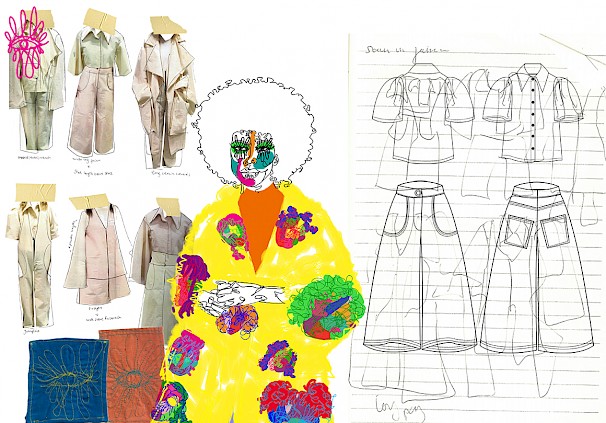 My collection, 'Gaze' is inspired by the intersectional feminist movement. The message of my collection is that your clothes reflect who you are; interests and values, a wearable statement. The garments focus on the concept of recapturing the female gaze; designing for visual impact and joy.