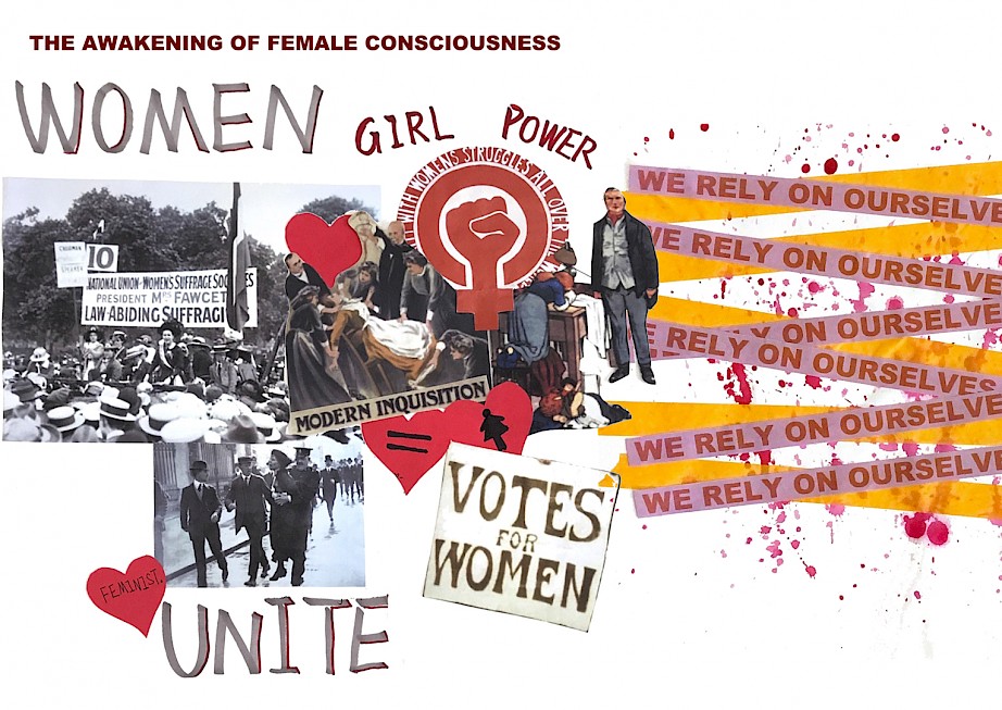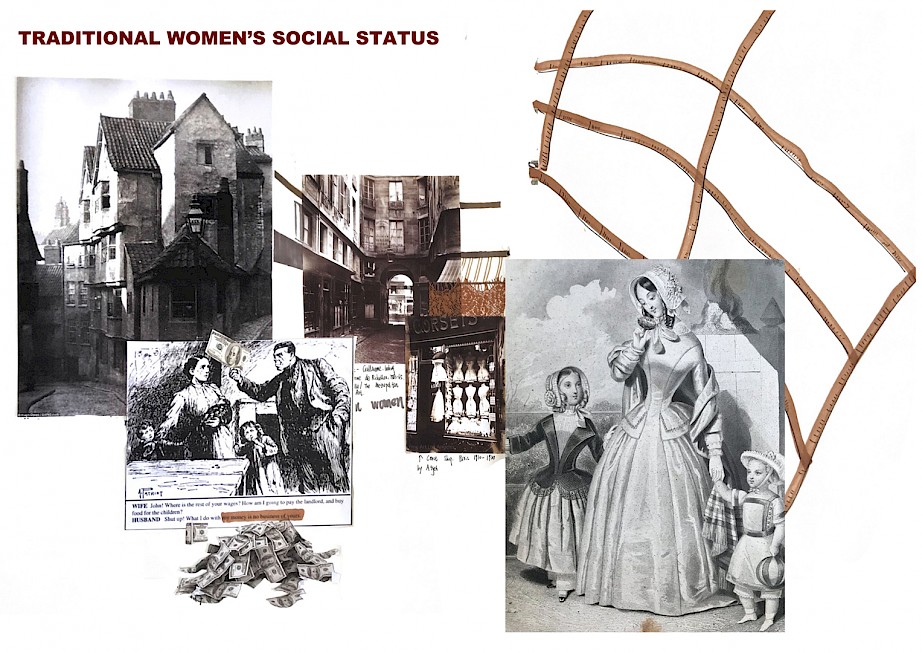 My inspiration for design originally came from the foreign film little women, which tells the stories of the four sisters of the March family. In the film, the four sisters bravely walk out of their own life path and realize their self-worth in this process. The clothing style in the film is bright, real and natural, highly restoring history and reflecting modern aesthetic feeling. These are the initial inspiration of design inspiration, continue to investigate the current situation of women's life before and after the background at that time, free from the oppressive environment, launched the process of women's movement, at the same time, using collage as the development point of design, to explore the relationship between women and freedom.