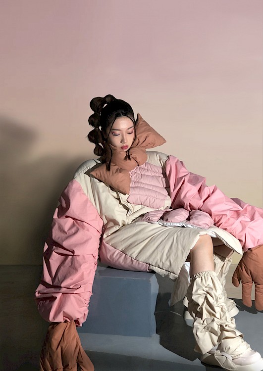 My name is Ding Yijiang. I’m from China. The main inspiration for my collection was from a set of pictures which I named “Live”, the photographer wants to express “Maybe we make hard choices between weight loss and food every day and we don't want to have an inferiority complex because of obesity, or even give up on ourselves.”