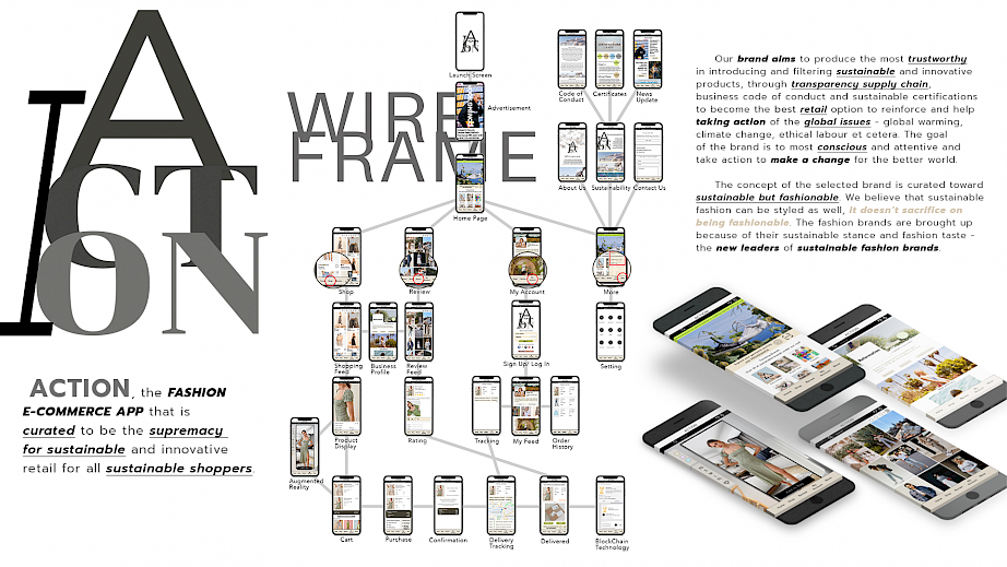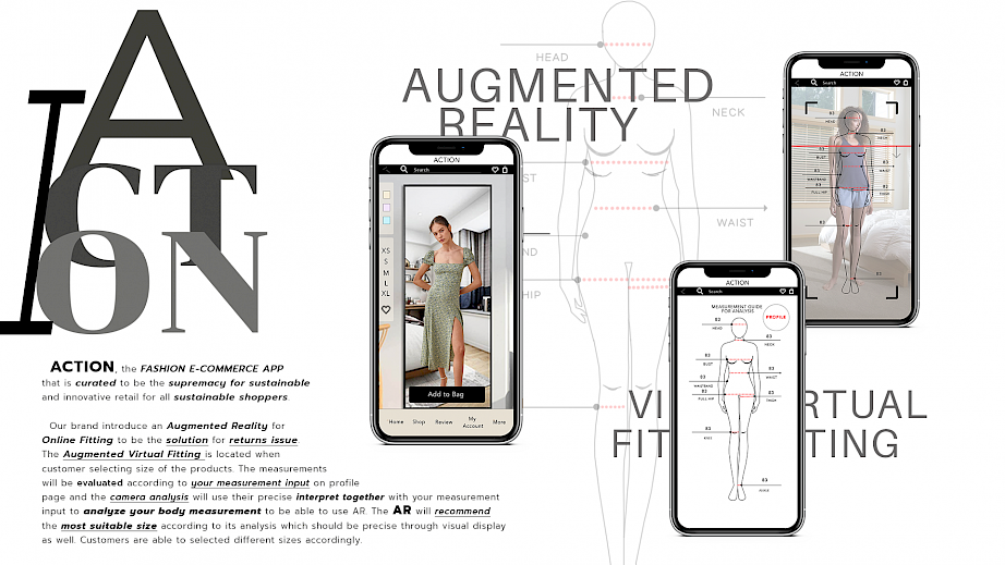 The fashion e-commerce app ACTION – aims, through curation to introduce sustainable and innovative products, reinforcing transparent supply chains, introduce AR technology for virtual fitting, and embraces a creative review platform to generate unity amongst the sustainable shopper community.