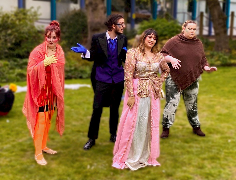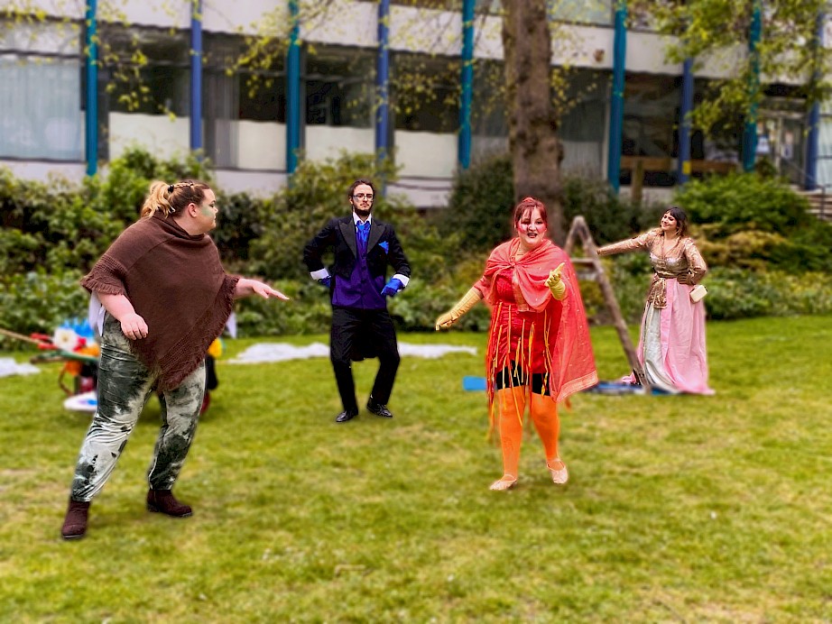 Familia Story are a 5-member company, who were formed as part of the Final Major Project (FMP) Module on the Theatre and Professional Practice course. The company plans to continue making work past their University lives, carrying on with 3 of the current members, with new members joining. They specialise in Outdoor Children's Theatre, creating engaging and fresh shows that take audiences on a storytelling journey.