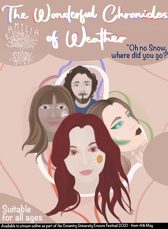 A tale of nature is just one stream away; come and see what Familia Story has to say. Join us with our debut show The Wonderful Chronicles of Weather to hear some songs, some stories, and you might be surprised what you may learn when you hear a Familia Story. Follow the stories (or even a snippet) of our five reimagined folklore characters (who you may find familiar), Rain, Wind, Sun, Moon and Snow as they tell you their tales from times long ago. Join with your family, friends and people you know; have a laugh, have some fun and be sure to enjoy the show!