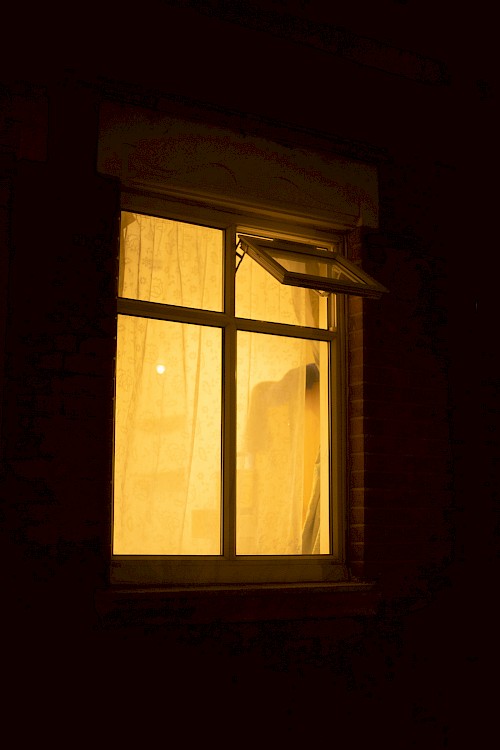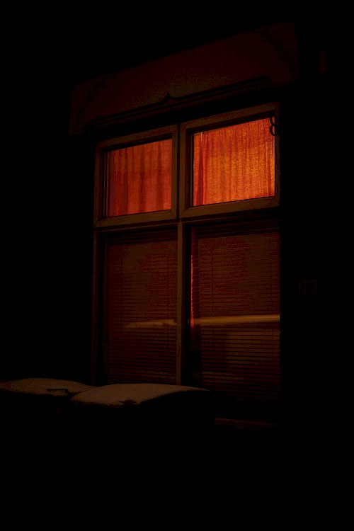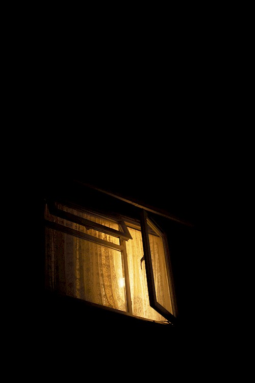 "Outside In" is the journey of an unnamed individual wandering through the city, lost and alone, in search of human connection. The series explores the feeling of not belonging to a place, but desperately wanting to. Filled with loneliness of always looking from the outside in on other people's lives, the individual tries to escape this isolation, bringing the viewer along to their late-night walks. These become a voyeuristic search, as the individual gazes in strangers' windows looking for traces of life. The photographs of curtained windows hold an air of suspense and mystery, as anyone could be right behind, ready to bridge the gap and connect with the individual. The glass creates a physical barrier, and a possible connection is close, but always just a step out of reach. With a focus on the light emitting from the windows, Emma Giordano creates a story of someone looking for the human connection they desperately crave.