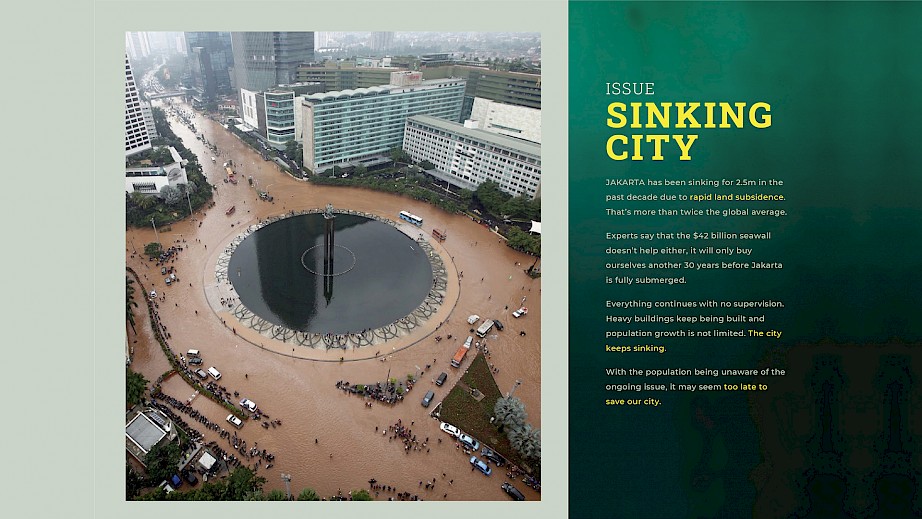 I create designs with a goal: to repackage information in a way that other people can understand more easily. The challenge comes when we add aesthetic appeal to the mix. I believe good design can be achieved when we strike that balance between the two. The Drowning Jakarta campaign is an excellent way to display that.