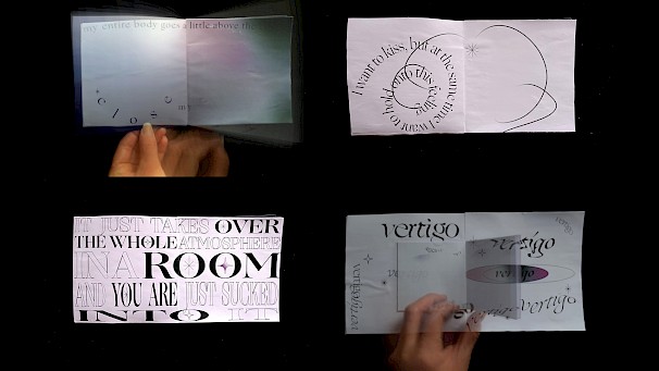 Pages from the artist's book "The Moment Before a Kiss. How the moment might sound like"