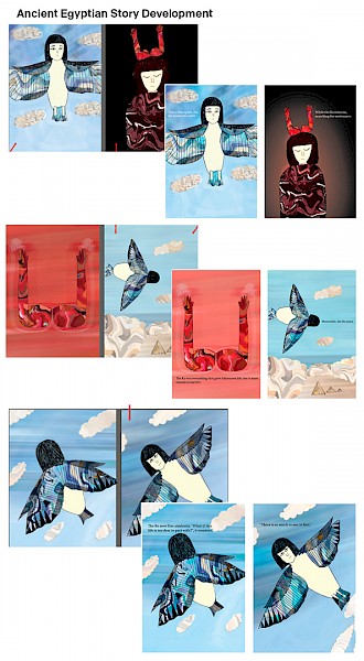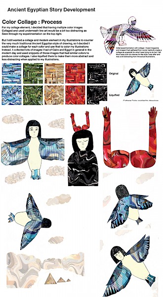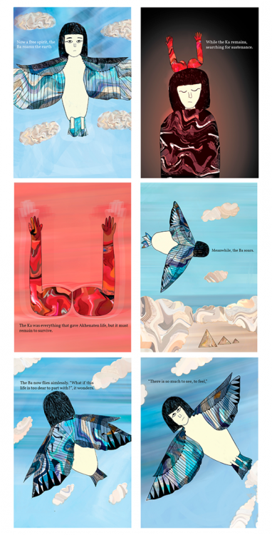 The projects I’m exhibiting are the most prominent outcomes I’ve made this year, including promotional material for a food festival and mystery box brand, and an illustrated ancient Egyptian story.