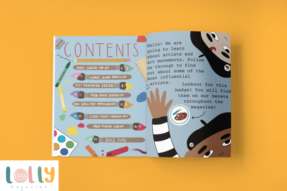 My name is Molly Port and I am an illustrator based in Rugby, UK. You can find me on social media with the handle "mollyillustrations" where I regularly update my pages with current artwork and projects I am working on. I have spent the past couple of years trying to find my style and have now succeeded finding that my passion lies within children's editorial For my final major project, I decided to create a children's magazine. I wanted to fully illustrate a magazine to educate children on artists and different art movements, making a fun learning journey. I love using bright colours and making illustrations as visually interesting as possible and by creating this magazine, I was able to do that! Children's editorial is full of colour, fun and positivity, exactly what I want my artworks to portray. Alongside children's editorial, I am an educator with a passion for teaching. I hope to encourage other young creatives to explore careers in art and keep up with their creative sides. If you would like to see my full Final Major Project, you can view it here https://issuu.com/mollyillustrations/docs/magfinal