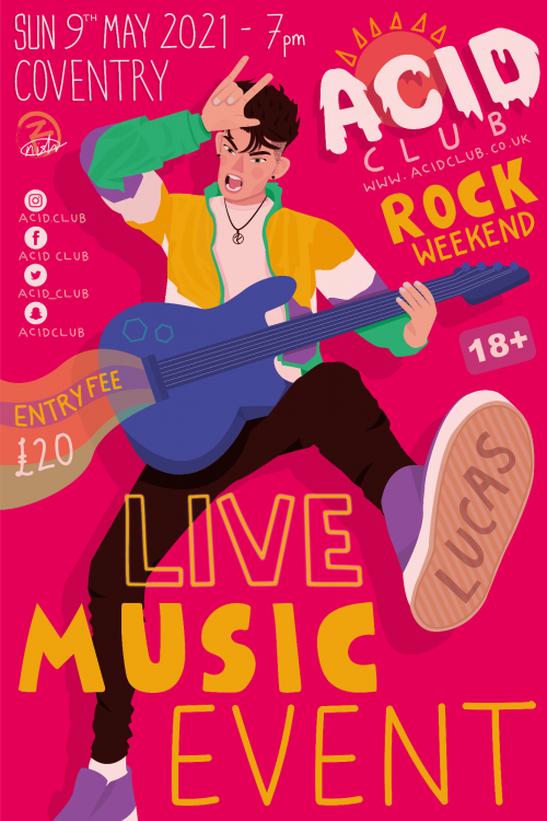 I worked at a Leicester based recording studio, creating single cover artwork and promotional materials for the musicians under the company label. I also gained experience at a Leicester Graphic & Web Design company working on character designs and icons. With both of these work experiences I was able to learn what it is like to work both; remotely as a freelancer, and within a company alongside others.