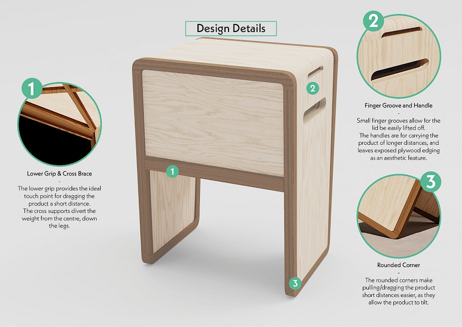 The multiple functions of 'the Stool' mean that it will always be useful to the user and in turn making it something they could not live without.
