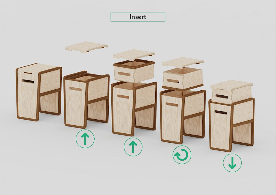 The idea stemmed from research that shows 25-34yr olds are moving more now than ever, and furniture is notoriously a nightmare to deconstruct, transport, and reassemble. However, 'the Stool' will be the first piece you take with you; it can act as seat to sit on when you haven't had chance to move the chairs yet, or the table to eat at. Each detail has been carefully developed to ensure the best user experience.
