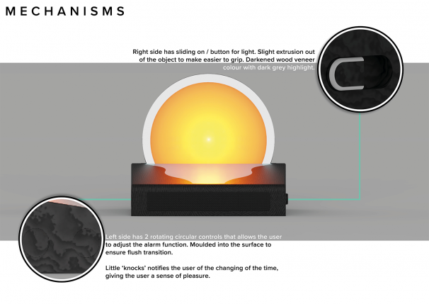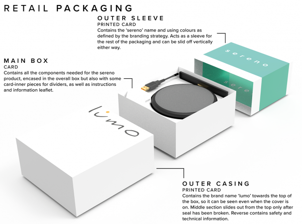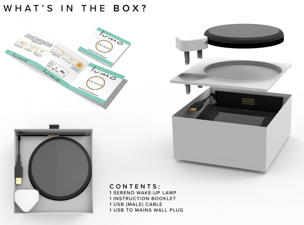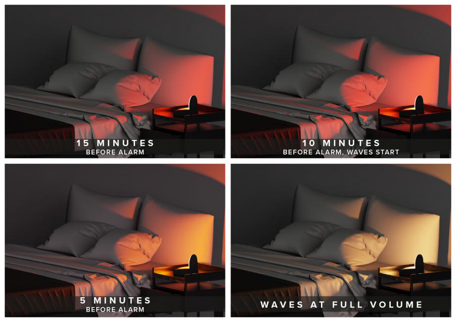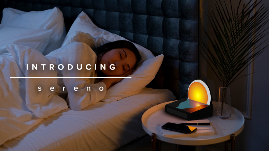 Deriving from serenity and calmness, sereno encapsulates the product's emotional value to the user. A slow, calming wake up call to the sound of the soft waves lapping on the sandy shore, combined with the gentle, progressive light illuminating over time to echo the morning sun ensures the user wakes in total serenity - ready and motivated for the day ahead.