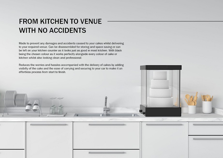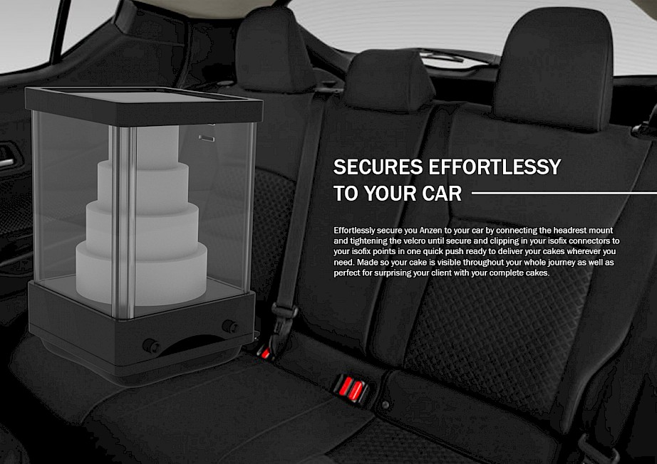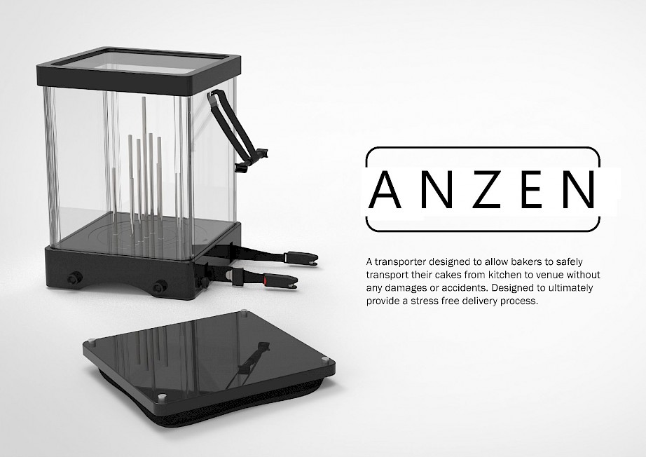 I have recently graduated as a product designer from Coventry University and would like to introduce you to Anzen, the cake transporter designed to transport fragile and intricate cakes from your kitchen to the venue without any damages and accidents. To provide you peace of mind when delivering and helping provide a stress-free experience of delivering and presenting.