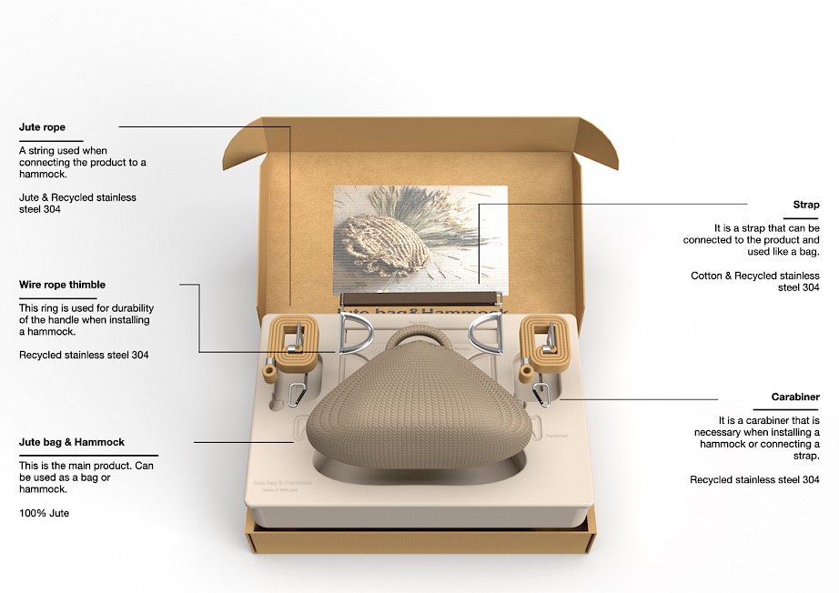 The bag is made using 100% natural materials. The user can use the product like a bag or hammock, so it is a single product, but it is designed to be used for various purposes.