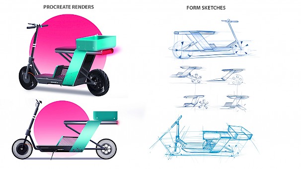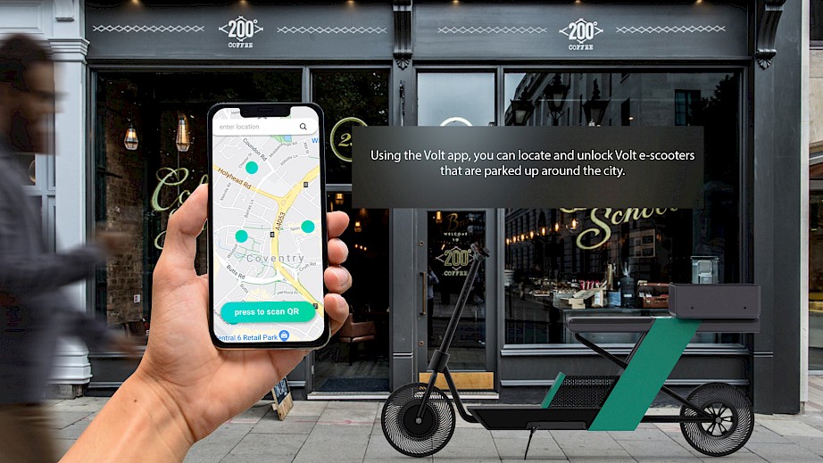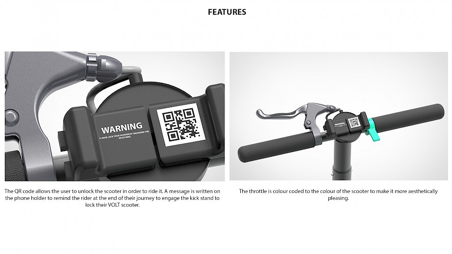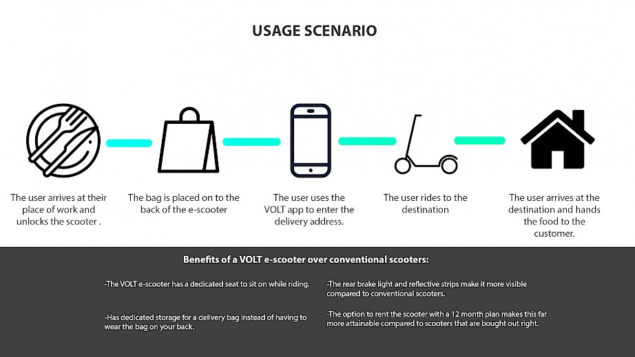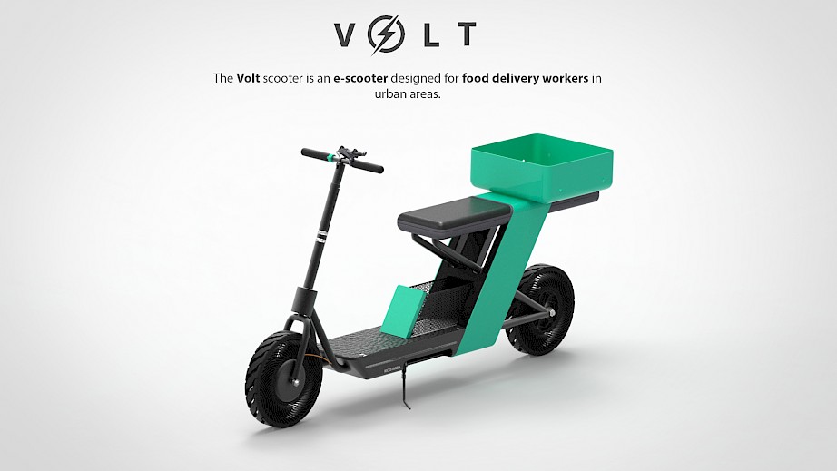 With the increasing popularity of e-scooters and the push for an all electric automotive future, the Volt e-scooter is designed for delivery workers who are looking for a cheaper and greener way of doing food deliveries in urban environments.
