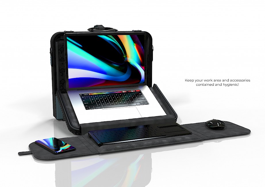 The world's first portable ergonomic workstation. A unique combination of features to improve laptop use for flexible workers, in one stylish and convenient package.