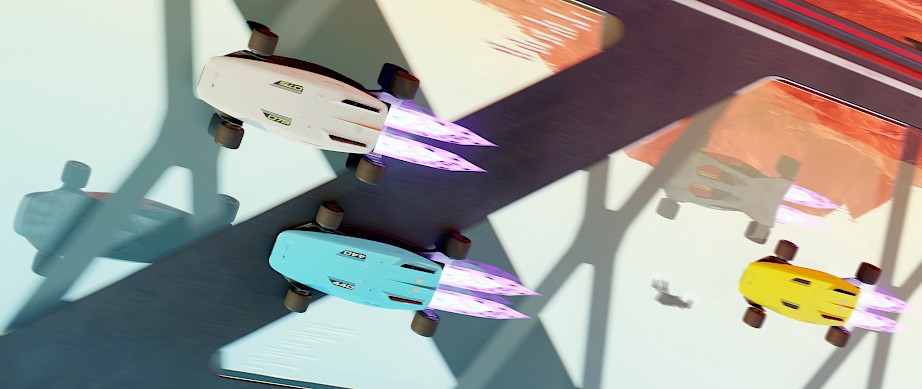 A science fiction, far future vision of motorsport in the next century. Utilising Mars as a base to create a race impossible on earth, Equirria uses the red planet's unique characteristics, exploiting it's atmospheric and gravitational qualities. Equirria combines current space grade technologies as well as sci fi future ideas, visualising an idea of what racing could look like in the far future.