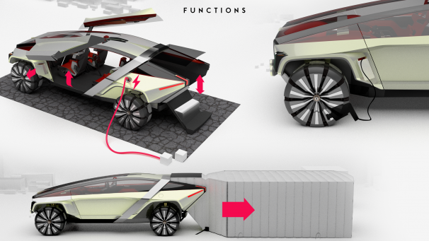 My final project named Allpa is an adaptive off road vehicle designed for the overlanding market of 2030 in order to attract potential customers to a more sustainable interactive electric vehicle. It will house a form of secondary transport (a small electric bike) for city driving to reduce congestion. Although lacking an internal combustion engine in favour of lithium-ion cells, Allpa aims to bring the emotion of ICE overlanding back into an electric world.