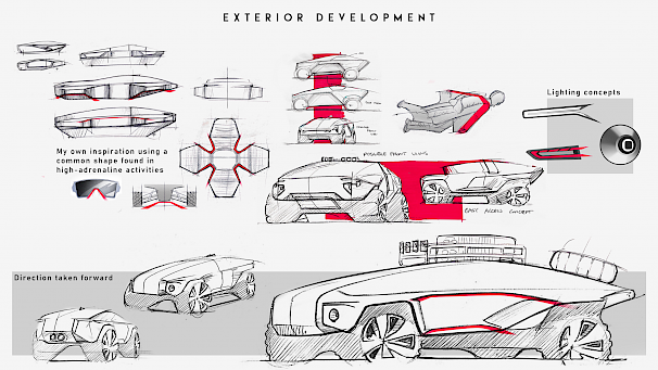My name is Akash Bhupal and I am currently studying Automotive and Transport design. With a keen eye on exterior automotive work but a desire to delve into other forms such as yacht and game design, I aim to try and become ever closer to the goal of creating an object with uncompromised form and function. Gaining experience on a placement at HPL prototypes and being proficient in creating both 2D and 3D visuals means that I get to see my sketch become a rendered piece of work. The knowledge I gained from working with the HPL team along with the feeling of seeing the evolution of a concept is something I very much wish to experience in my future career.