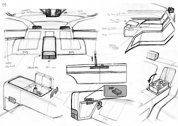 My project aims to look at luxury in a more practical way. Focusing on 2030 Russia means I can create a more rugged and practical luxury vehicle which is able to withstand all environments and help with all aspects of life either in the city or the countryside whilst doing it in style and comfort. Having an in-built bar, projector and outdoor seating means you can enjoy watching your favourite shows live or on demand whilst enjoying the beautiful countryside or beach with friends.
