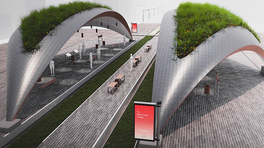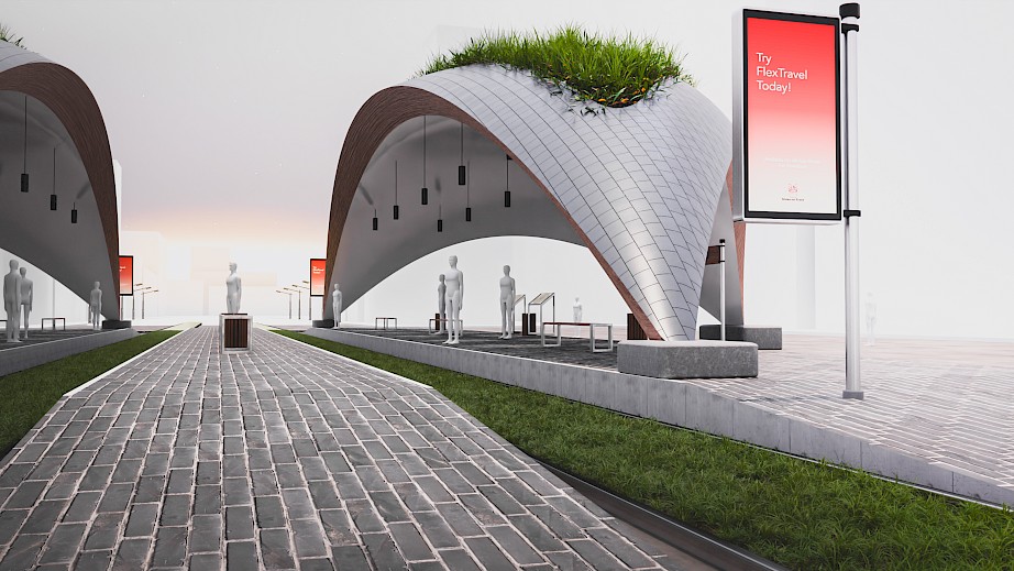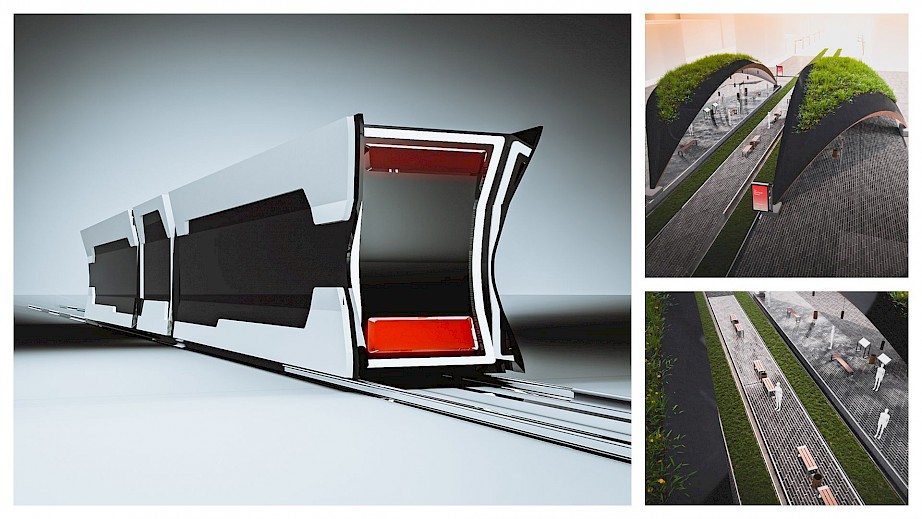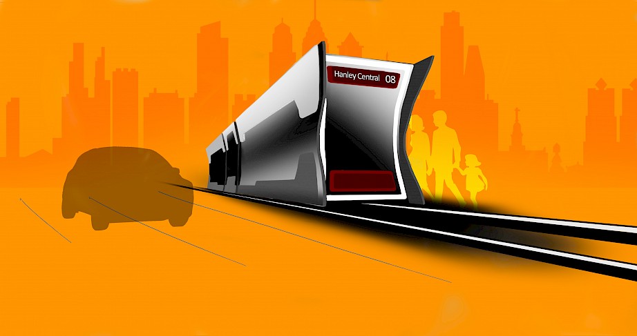 An inclusive transport network for Stoke-on-Trent (UK) in 2035, comprising a Tram & Transport Node. To solve traffic congestion, boost the economy & regain the city's appeal as a tourist attraction.
