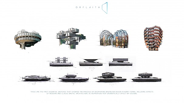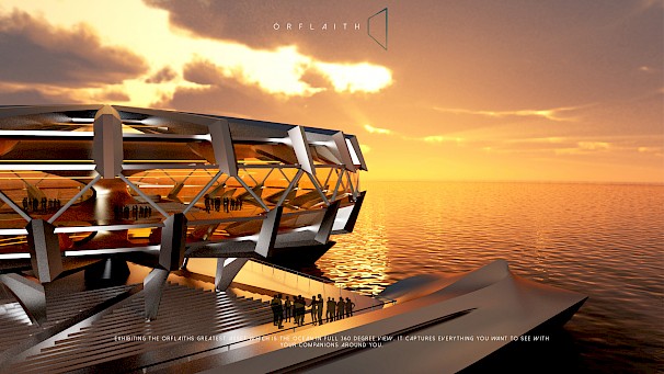The Orflaiths purpose is to make a hospitality experience on a catamaran that takes brutalist architectural design as its main inspiration. The vessels design will create an environmentally friendly experience for different demographics. Ultimately the design reflects my persona and supports his company's ethos.
