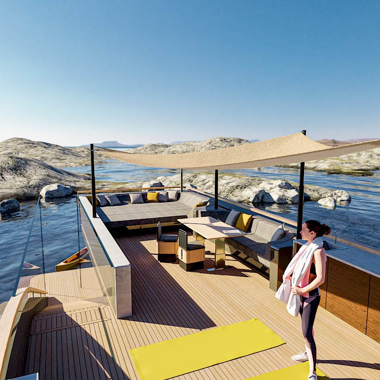 A Catamaran to discover Stockholm's Archipelago islands in a self mooring, fully autonomous vessel supporting users by allowing them to curate their ideal experience.