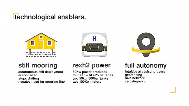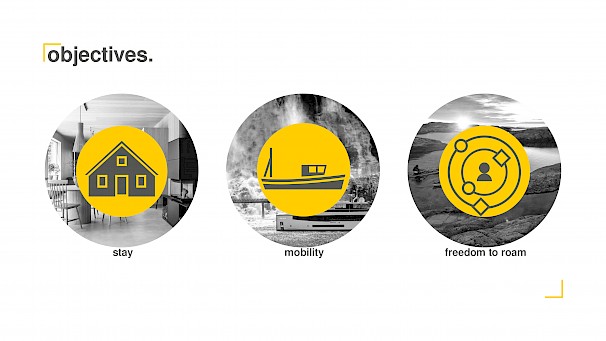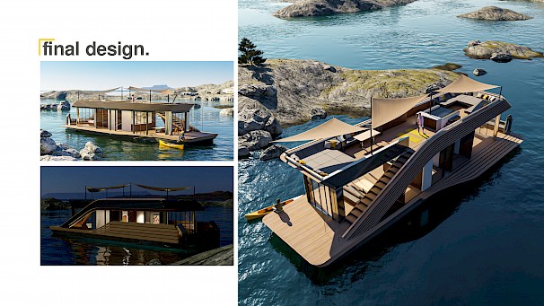 The vehicle Is a rentable hydrogen powered houseboat for up to 5 people to be used in the Stockholm Archipelago islands. The vessel is designed to be fully autonomous and perform all operational functions such as navigation and mooring to negate the need for prior marine experience.