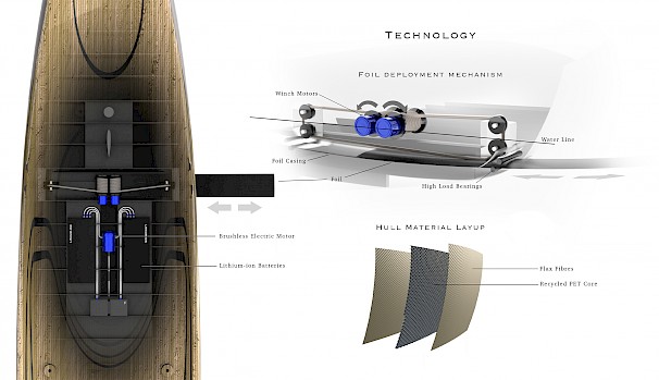 Elittica represents the next generation of zero emissions luxury sailing yachts. She is a 110ft vessel combining innovative technologies and