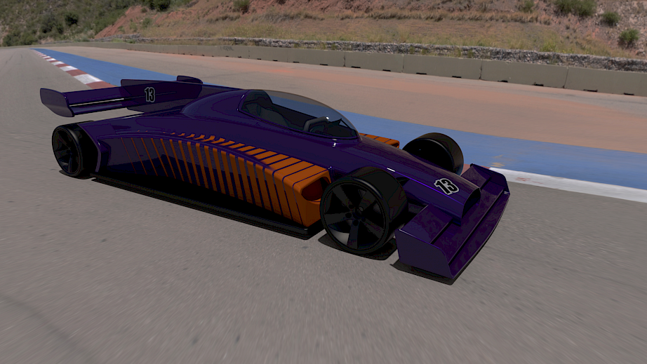 A driver focused, hydrogen powered racing machine designed for the virtual world of gaming. The design takes inspiration from real racing vehicles but with none of the constraints, allowing it to be more extreme.