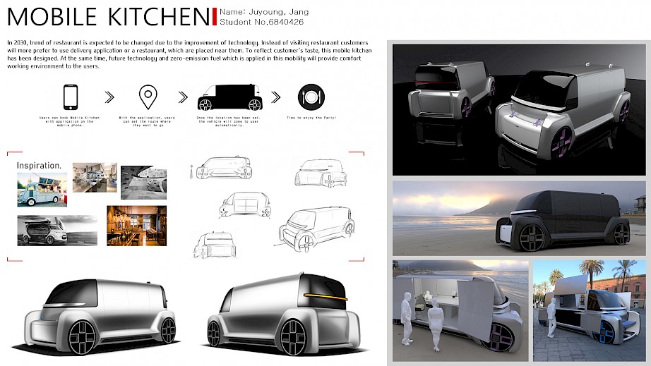 This Mobile Kitchen is a vehicle that reflect the restaurant trends in the future. In my point of view, most of restaurant business can be transferred to mobility service, since recently, many people are running their business in food truck. And there is the situation that can be happened in the future: