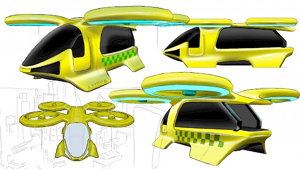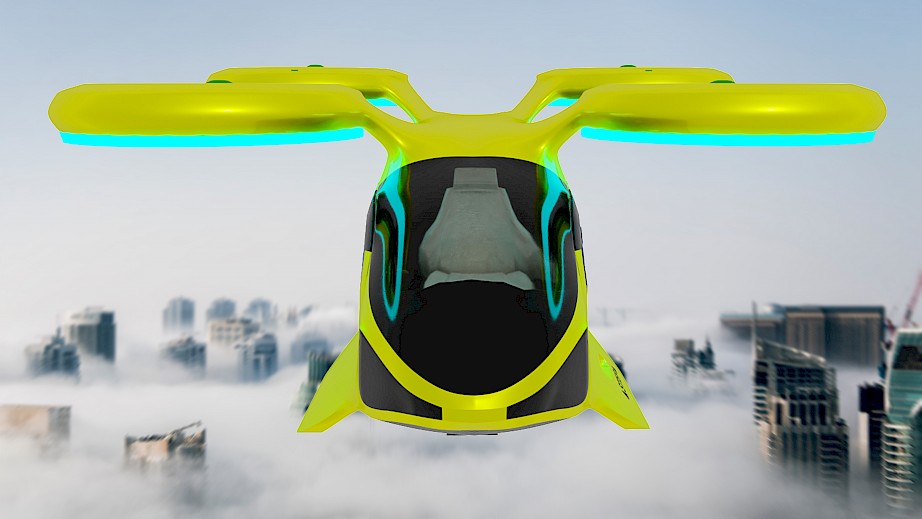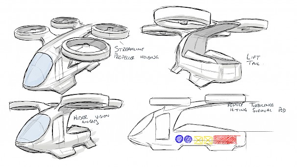 The design of the EVTOL is influenced by local London architecture, designing around the themes of; functional, axiomatic, and sculptural.