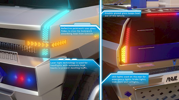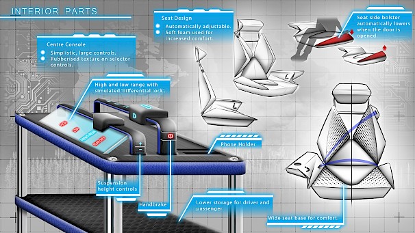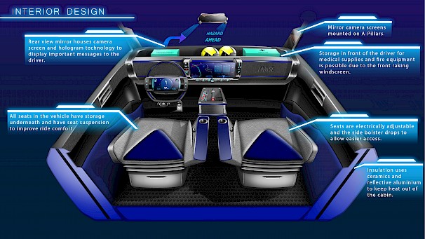 After taking interest in the human interaction with vehicles, I decided to focus my final project on the Human Machine Interface (HMI) of a future evacuation rescue vehicle. The Anvil showcases my perception of a vehicle with minimum interface distraction, whilst still displaying essential information to drivers in a stressful scenario. The possibilities of HMI in the industry are growing daily and it is an area I am fascinated by.