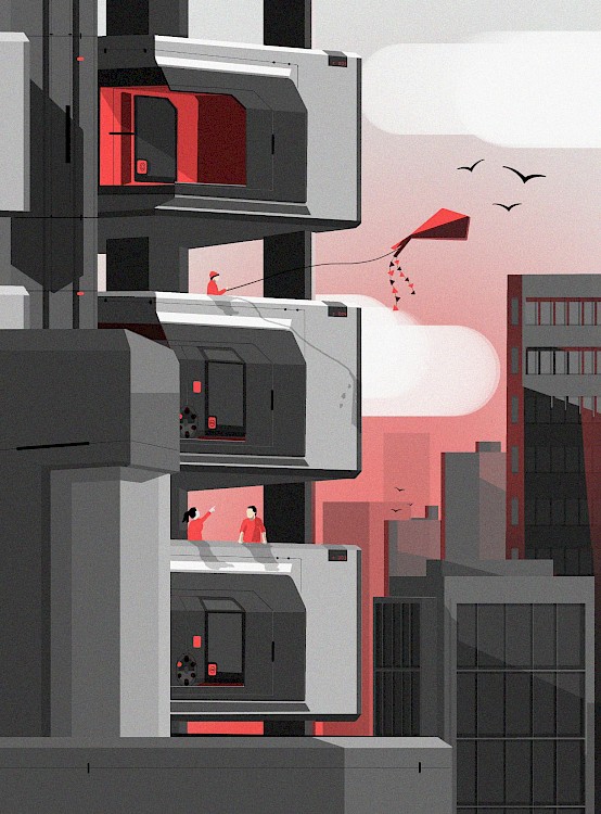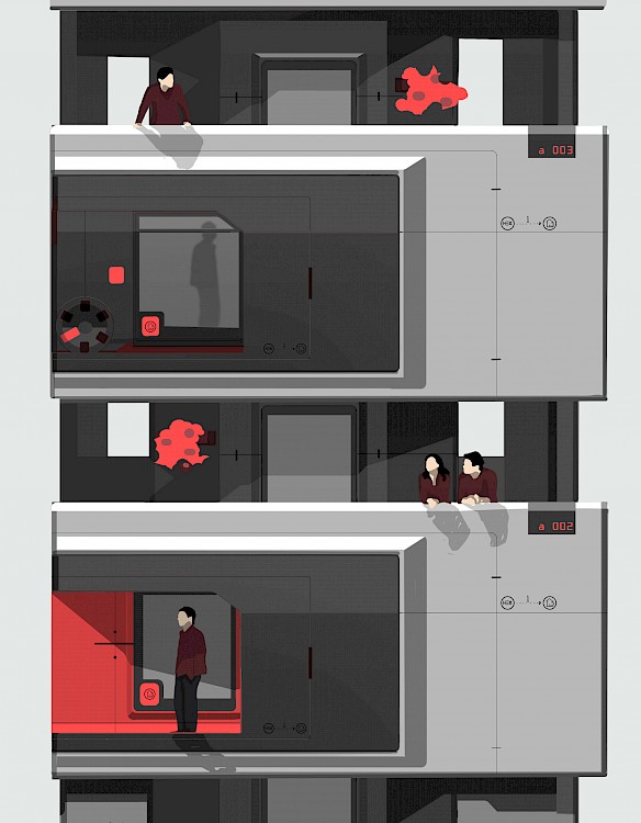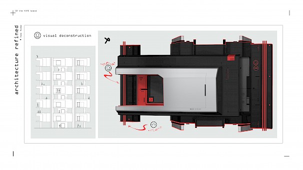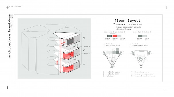HEX is an adaptable space for efficient living in the city for 2030, that seamlessly integrates with a larger architecture to form an additional, usable living space.