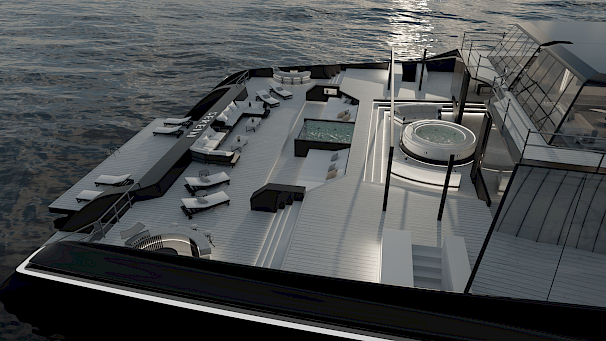 The catamaran takes advantage of its different possible modular configurations complemented by shared ownership to target a new market of high flexibility and sustainability, in order to appeal to potential clients in Asia-Pacific.