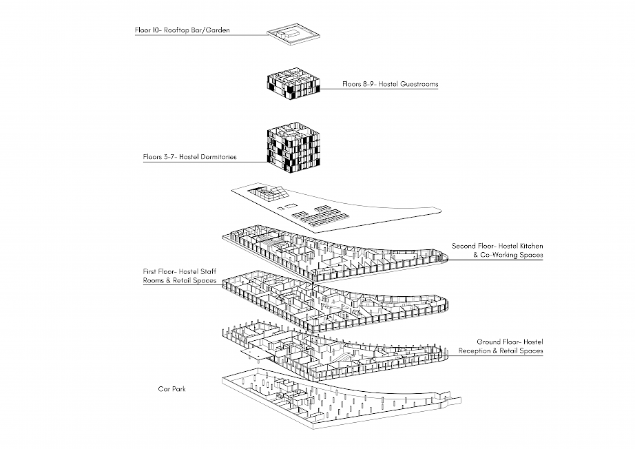 My ethos as a designer comes from my strong passion for sustainability and not taking life too seriously. So my Workin'Chill Hostel & Co-Working is all about a minimalistic approach to a hybrid building while keeping it fun and functional.