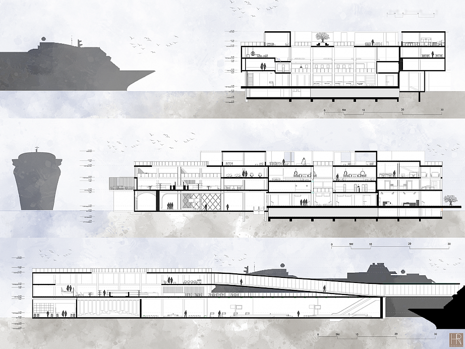 For passenger use only, it features check-in, security check, passengers atrium with duty-free shop, restaurant and bars, as well as, private lounge, embarkation lounge and luggage claim. The end users are cruise passengers whose aim is to provide a safe boarding and arrival and locals who would enjoy the view from the building and building history in a new light.